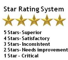 • Four Star performance means satisfactory. There may be some restrained and/or inconsistent satisfaction or trust from customers and employees.